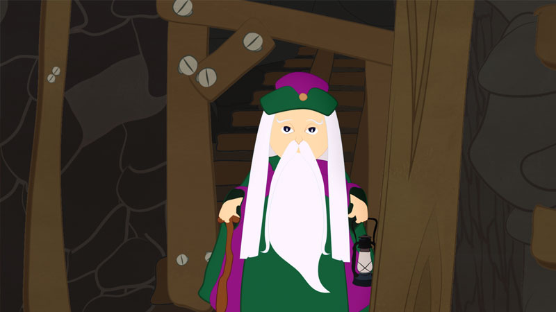 Karlik szybko przekonał się, że nie dorówna doświadczonym górnikom. Wtedy obok niego stanął starszy górnik. Zaoferował swoją pomoc. Karlik musi jedynie uczciwie oddać mu część zarobionych pieniędzy.