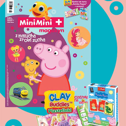 Razem z nim 2 wyjątkowe prezenty z bohaterami ulubionych bajek! Niespodzianka od Rybki oraz do wyboru: karty Piotruś z serii Świnka Peppa lub zestaw kreatywny ClayBuddies Plastelinki Barbie do tworzenia supermodnych kreacji!